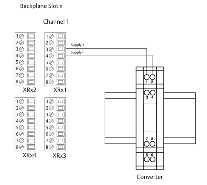 The converter powers the sensor with an excitation voltage and converts the displacement proportional sensor signal to an output voltage range that is suitable to the Universal Measuring Card. The converter can be powered either by the Universal Measuring Card or by an external power supply.